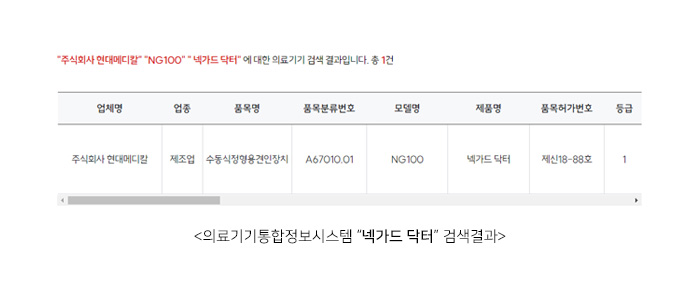 넥가드닥터는 식품의약안전처 의료기기통합정보시스템